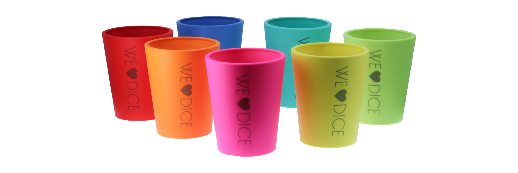 Jeder Becher kommt mit Deckel so kann der DiceCup Flex auch mit auf alle Abenteuer gehen.